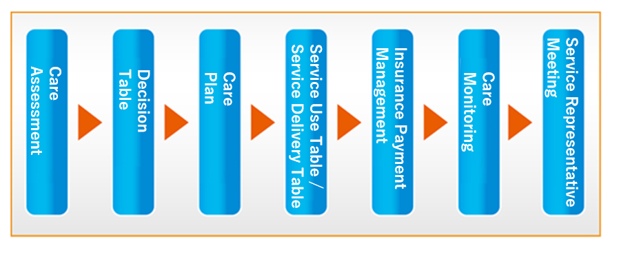 A convenient information sharing mechanism is provided as an additional function for care managers to assist in their constant collaboration with multidisciplinary partners. The system facilitates collaboration not only with elderly care staff at other corporations, but also with medical professionals, particularly attending physicians, who share a deep relationship with the care recipients. Additionally, this tool facilitates cost reduction via going paperless and is efficient in assisting care managers with compliance management via statutory form functionality. The tool helps to greatly reduce incidence of insurance forms being returned to facilities due to errors.