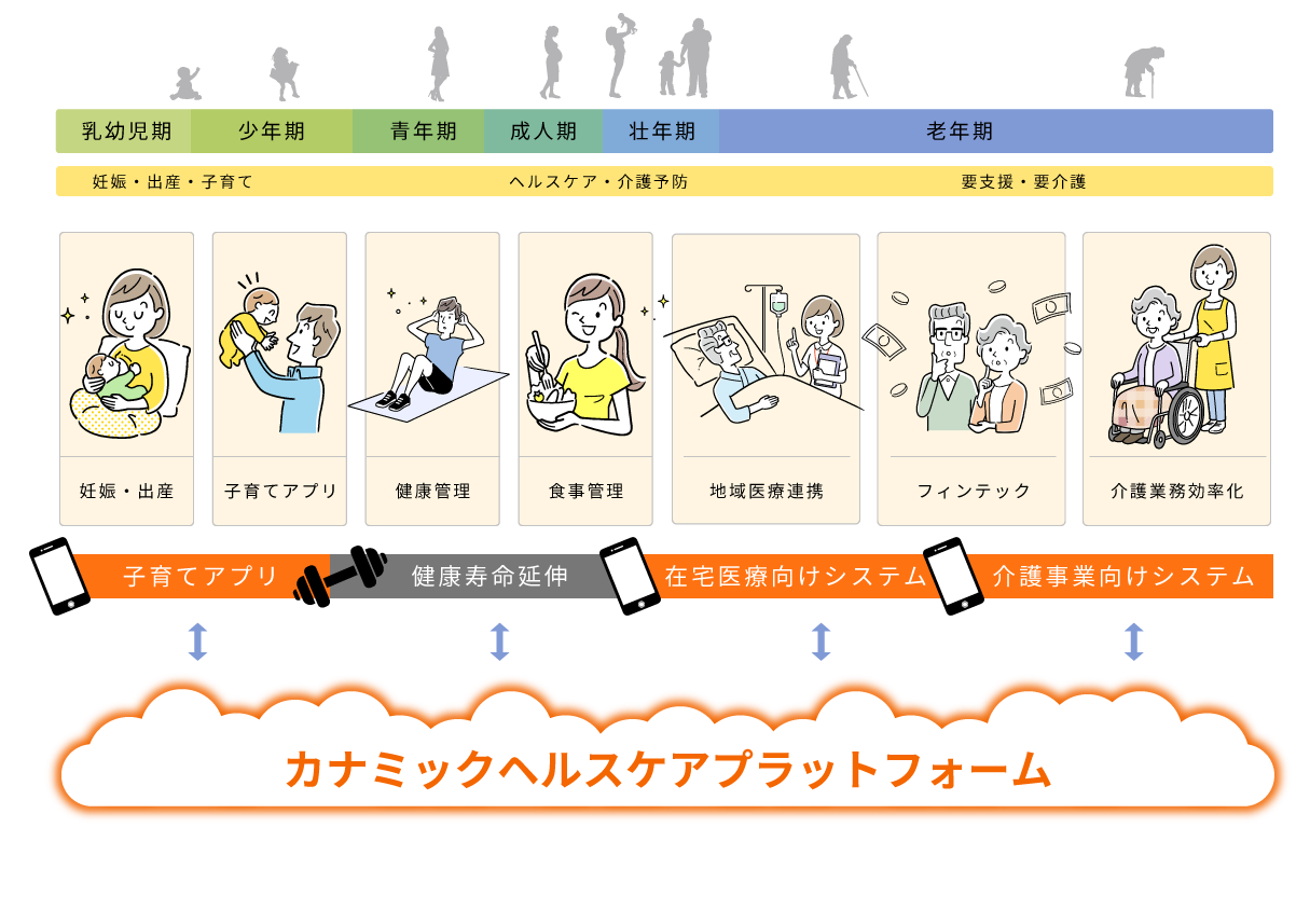 生まれてから亡くなるまで人々の一生を支えるヘルスケアプラットフォームを開発しています。